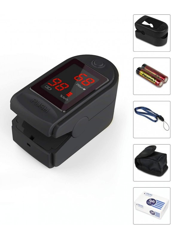 Concord Basics Blue Fingertip Pulse Oximeter Blood Oxygen Saturation Monitor with Carrying Case, Batteries, Silicone Cover and Lanyard